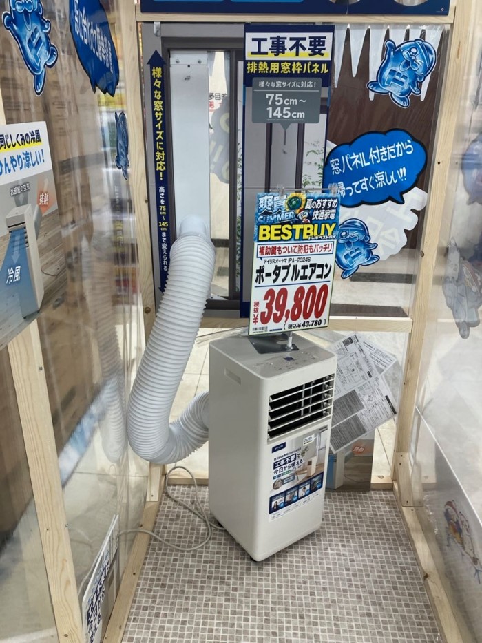 見た目はダサいけど工事不要というナイスなエアコンなのです。