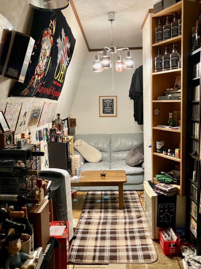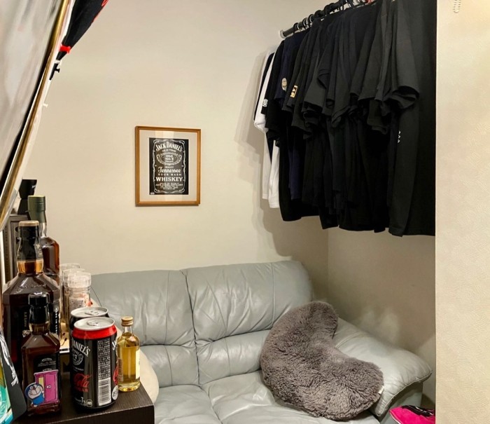 この黒いTシャツコレクションがかかっている壁をぶち抜いて隣の部屋に1mほど広げて…