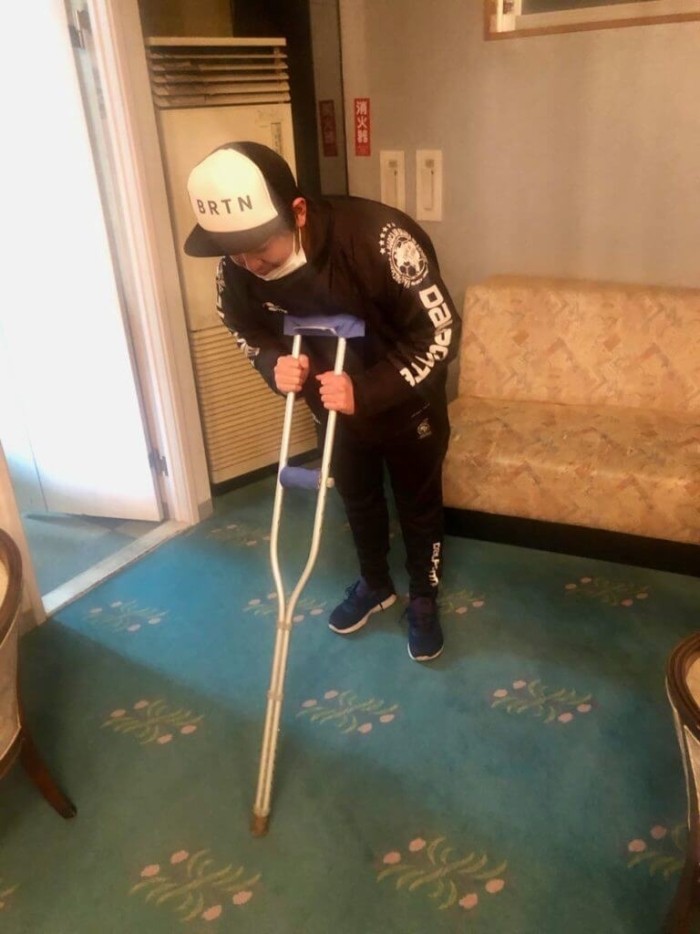 『松葉杖生活になってしまいました…』とアホな報告に来たり…