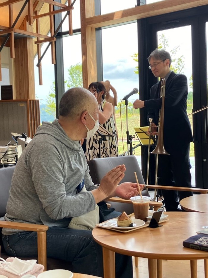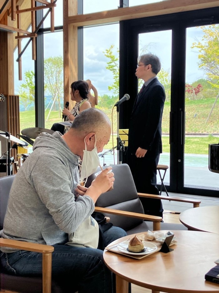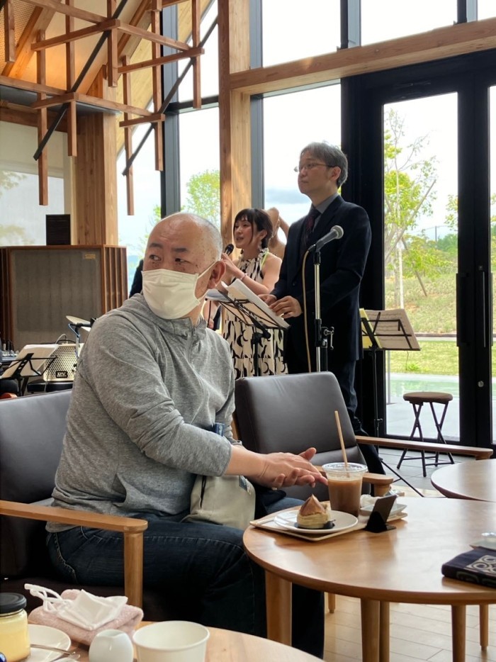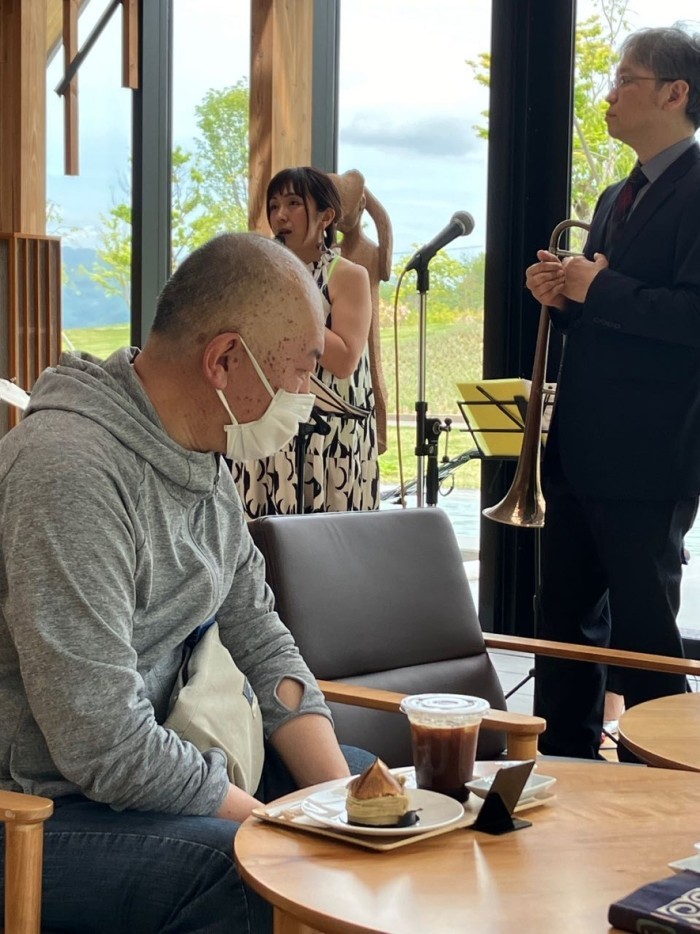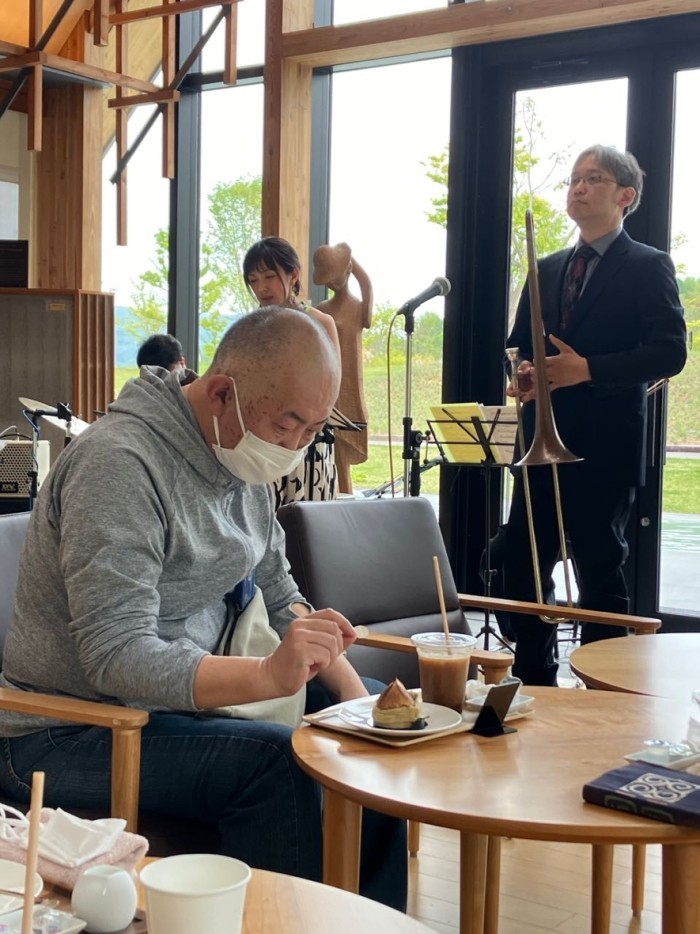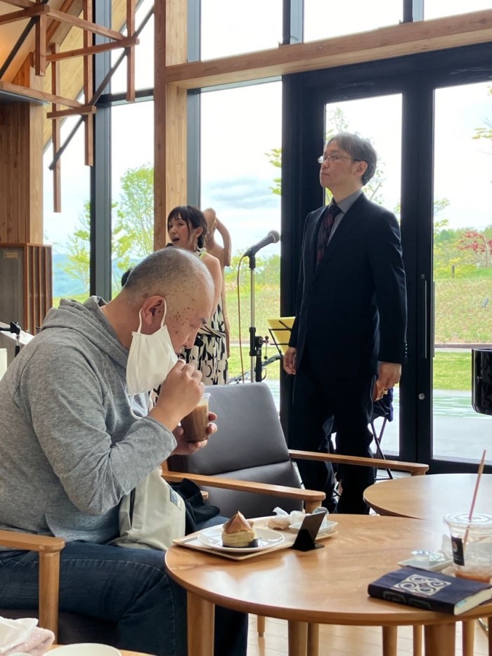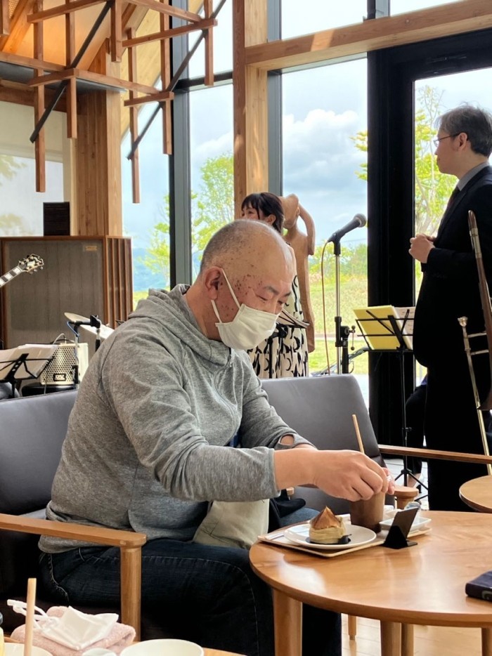 アイスコーヒーを飲まずに曲に聴き入る田村さん