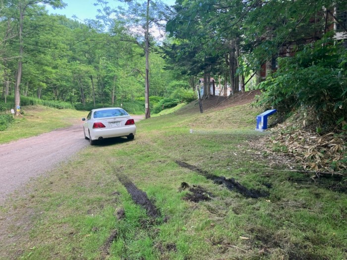 車がぬかるみにドップリはまり込んでいたのです!!!!!!!!