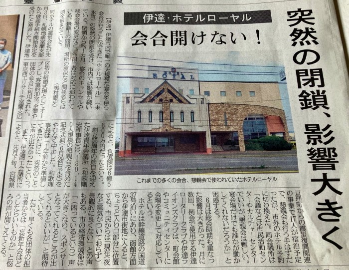 私が25年ちょい勤務していて先月突然破産を言い渡されたホテルの記事でした