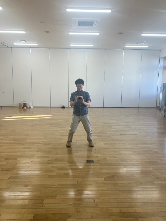 中腰での撮影の竹内さん