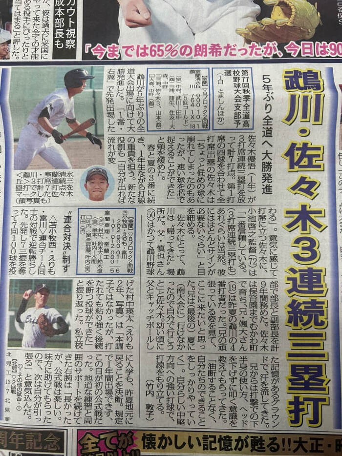 現在の鵡川高校には私の1つ上の世代の砂川北高校の野球部のキャプテンだった佐々木慎也さんの息子さんが選手として頑張っているのでした