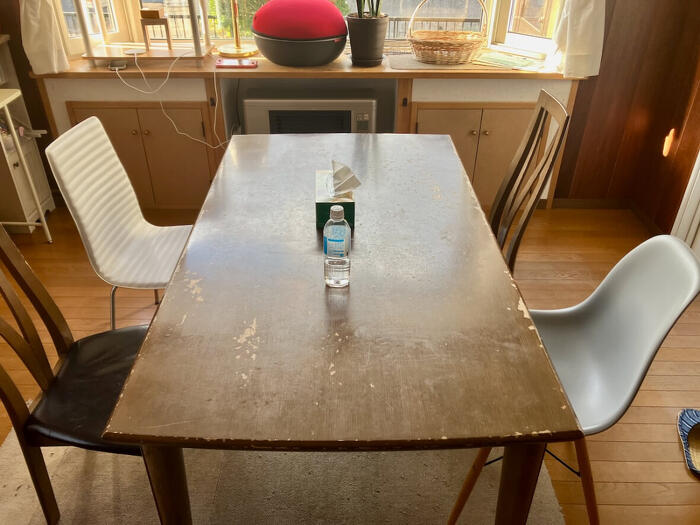あ、テーブルももうだいぶ年季が入ってるのですが椅子
