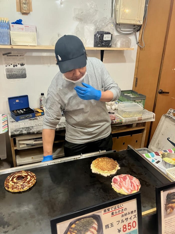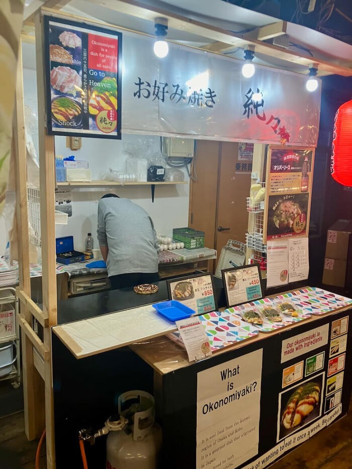 大滝のきのこ王国の中でお好み焼き屋台『純々』を営んでいる中井さんのところに行ったのです。