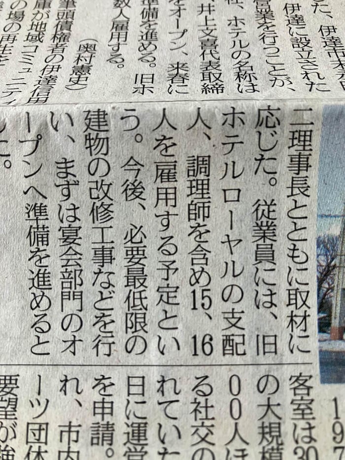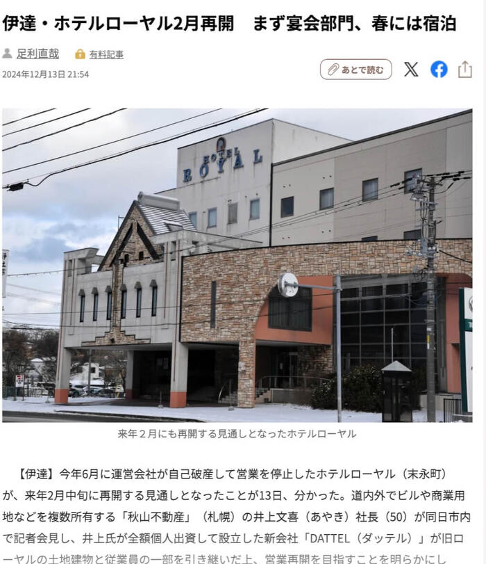 ホテルローヤルの再開の記事です!!