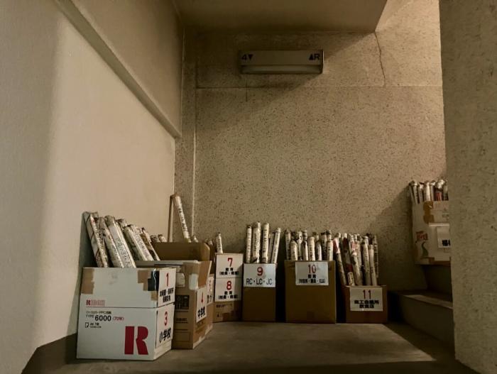 HOTEL ROYAL時代に使っていた各種団体の横断幕の在庫の箱です