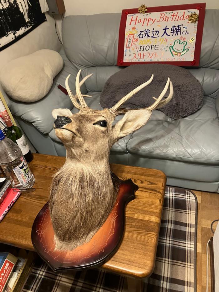 その鹿の頭部の部分なのだが角が思いの外広がっていて2ドアの私の車には積めなかった‥