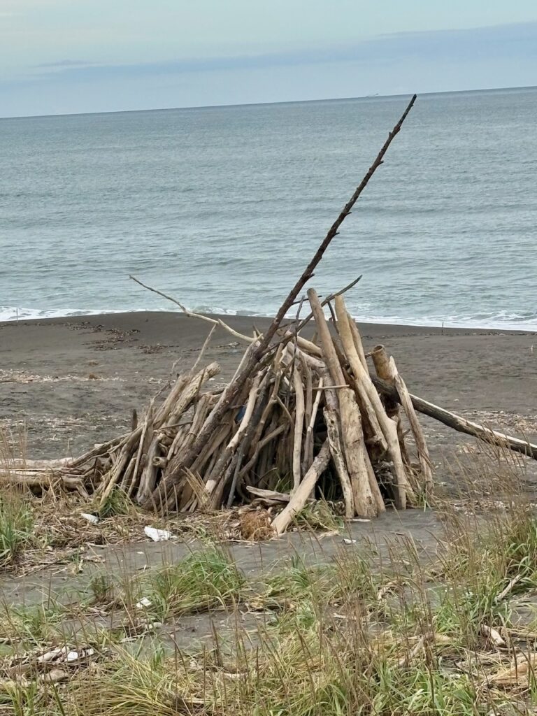 空の貝殻があちこちに落ちているので波で陸に運ばれてきた帆立とかの貝が来るのを待っているんだと思います