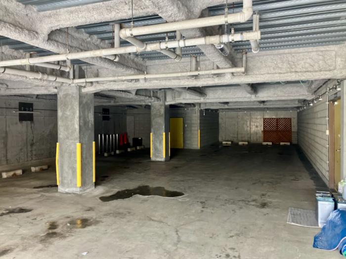 まずは元のホテル時代の溜まりに溜まっていた不要な物品を地下の駐車場に出す作業から始めました
