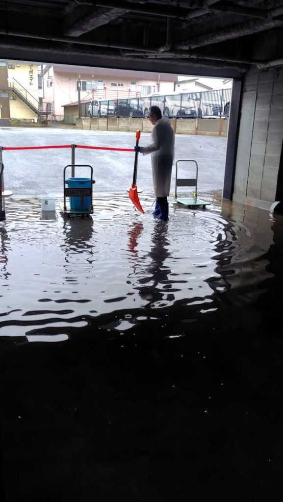 今までどんな台風や大雨が来ても地下の駐車場まで水が入ってきたコトはありませんでした
