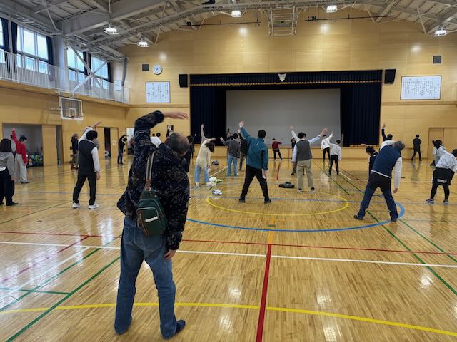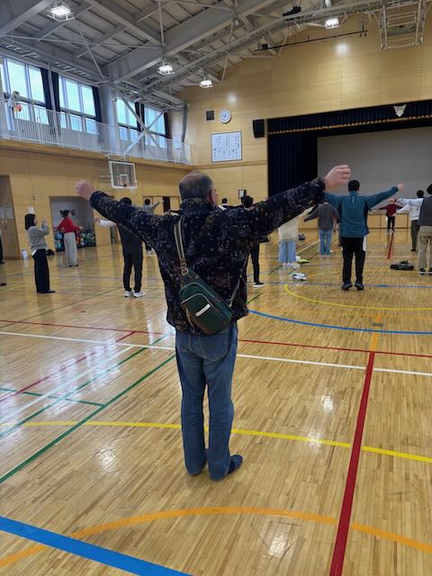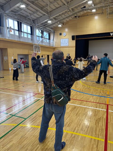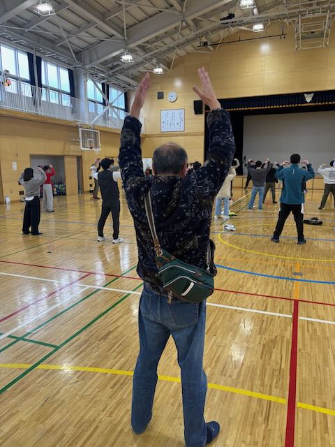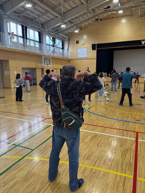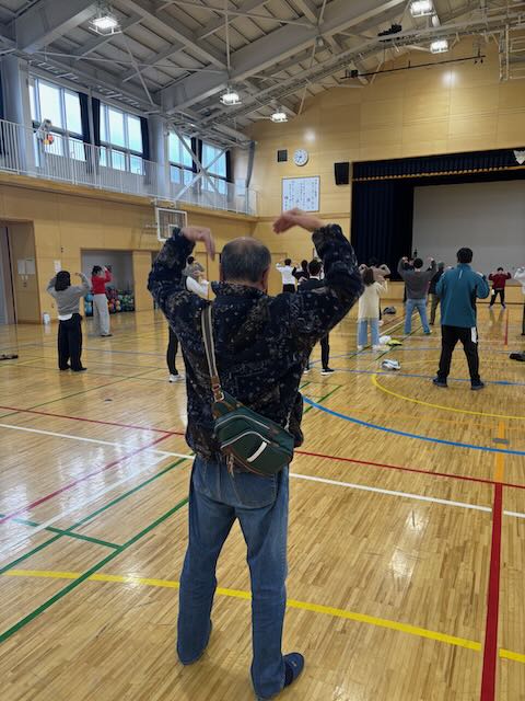 なので北村さんの後ろで北村さんの動きをマネして体操しようと思ったのです