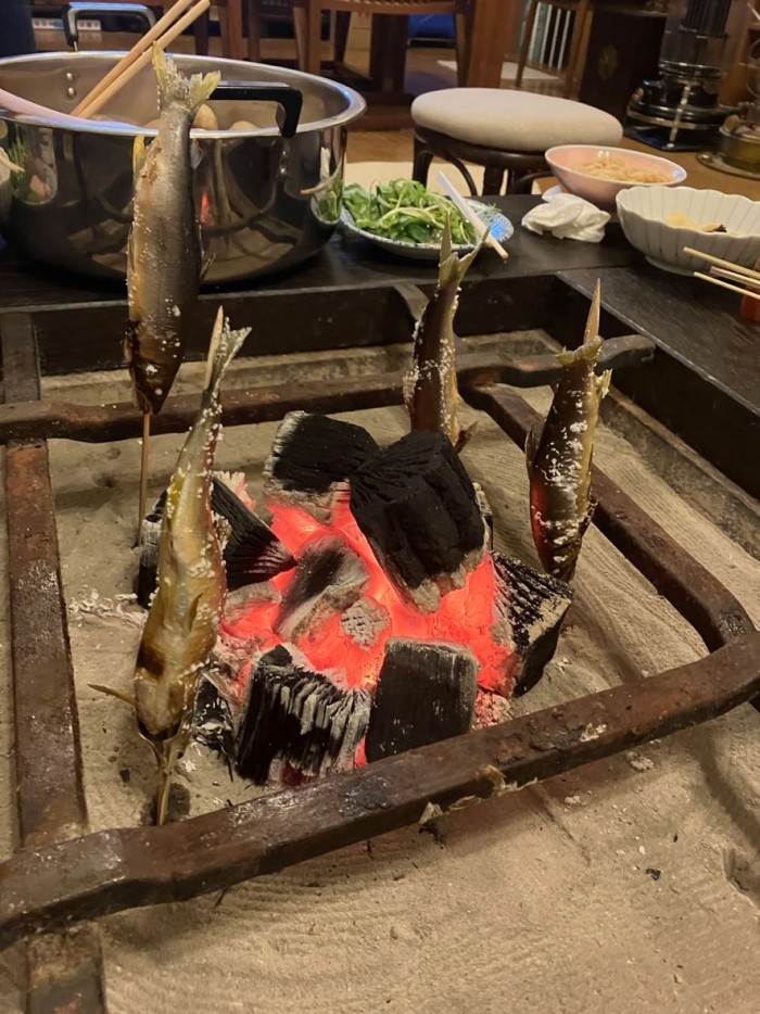 わざわざ天然鮎を取り寄せてくれて自宅の囲炉裏で焼いて食べさせてくれたのです!!