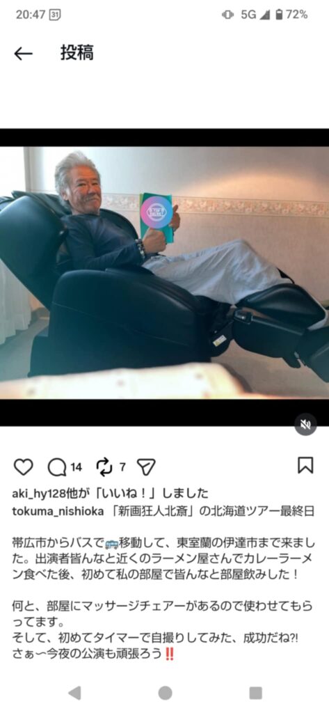 中野社長からいただいたマッサージチェアをご利用くださっての初自撮り投稿だったのです!!!