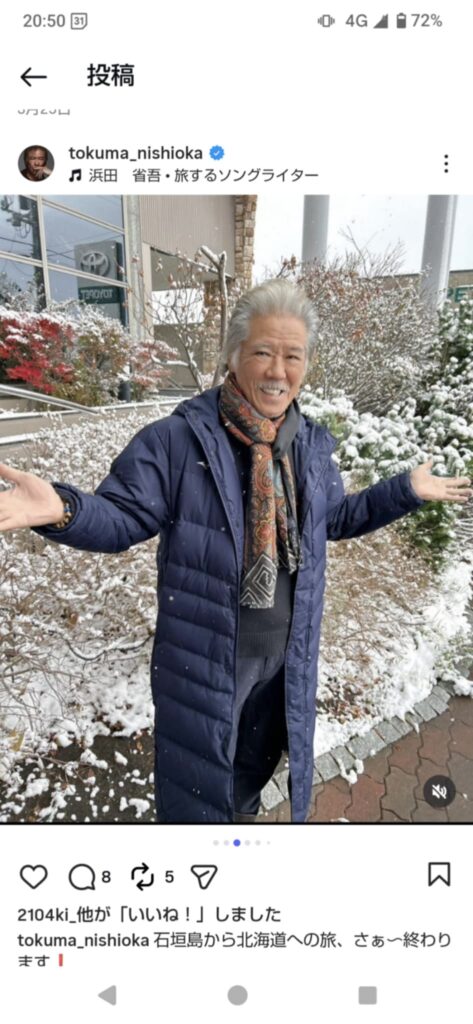 その日の朝、伊達市にもサラッと雪が降ったのですがその様子をあの西岡徳馬さんがご自身のインスタに投稿してくださったのでした!!!