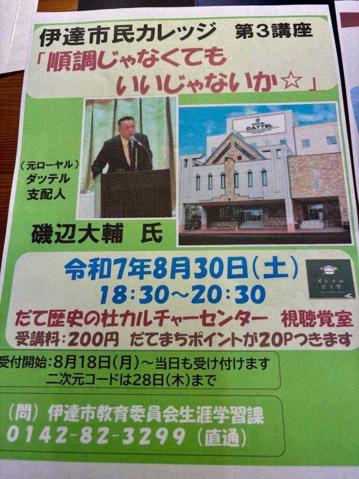 私はとても光栄なことに伊達市教育委員会からのご依頼でこんな講演をさせていただいたのでした