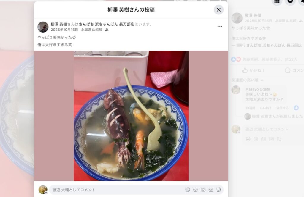 『この間、長万部の三八飯店で永ちゃんを見たんですよね〜〜』とおっしゃるのです!!!