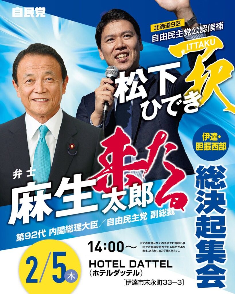 麻生太郎副総裁が急遽やって来ることになったのです!!!