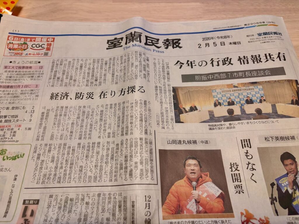 室蘭市長、登別市長、伊達市長、白老町長、洞爺湖町長、壮瞥町長、豊浦町長が一同に集まっての会合がありました