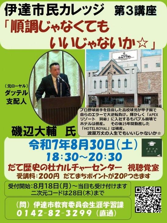 私、昨年伊達市教育委員会からのご依頼で『市民カレッジ』という講座の講師をさせていただきました