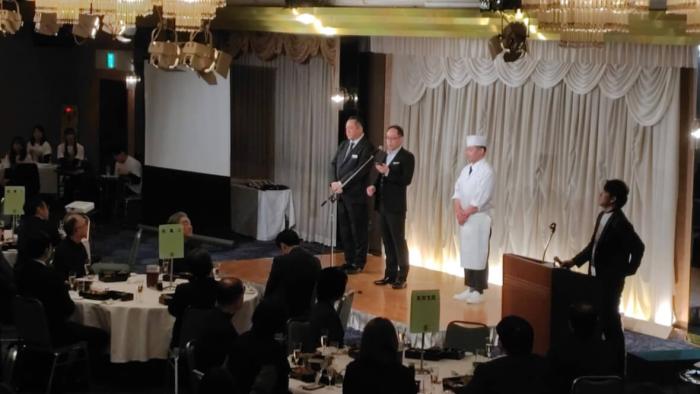 途中、井上社長と林料理長、そして私も壇上に上がってご紹介していただきました