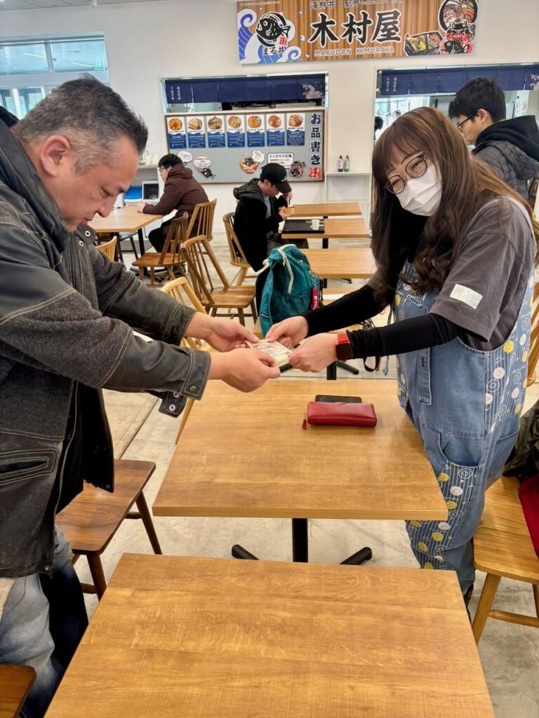 お店の人が『鮭のあら汁はいかがですかぁ〜〜?!』と聞いてきたので‥