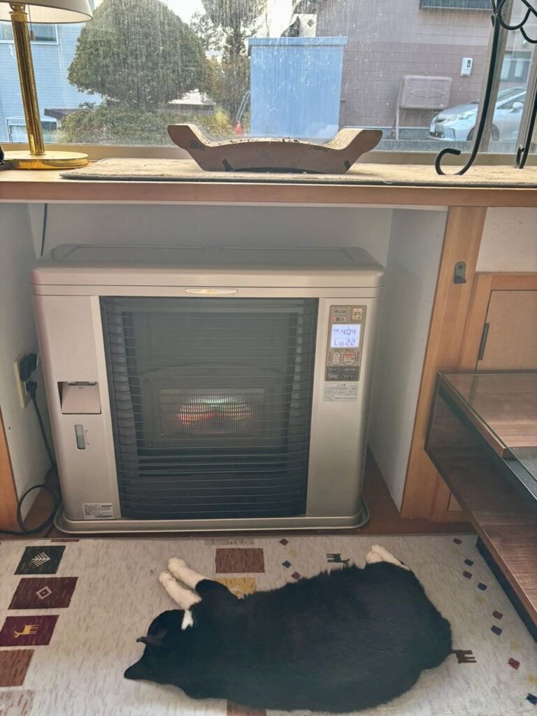 この人は見事にストーブのスイッチの音が聞こえたらここに来てくつろぐのです
