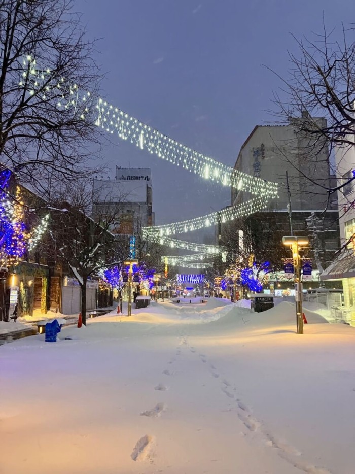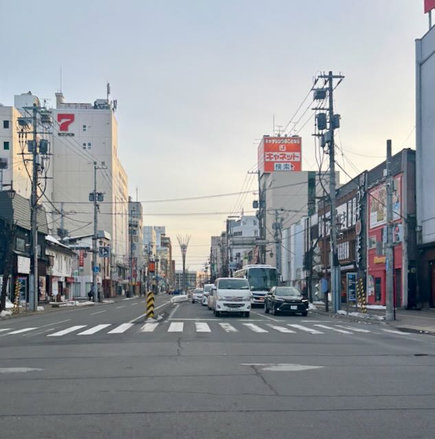 旭川の駅前通りの写真なのですが全然雪がないでしょ??