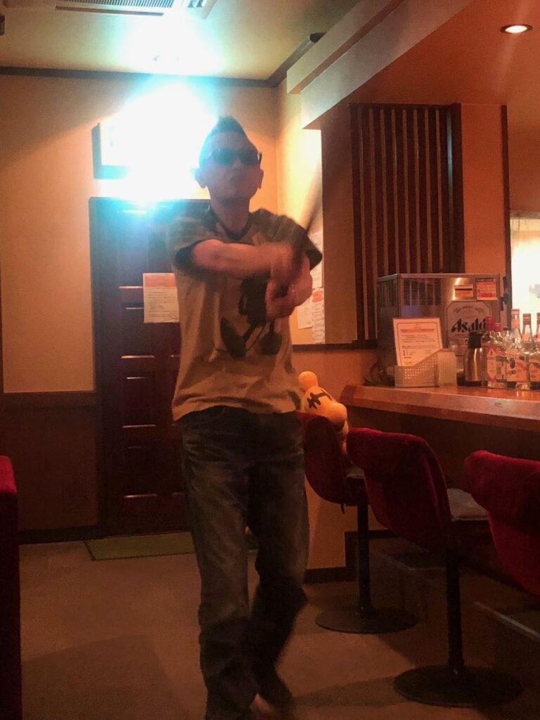 写真は店内で木刀を振り回す迷惑極まりない永ちゃんの様子です‥