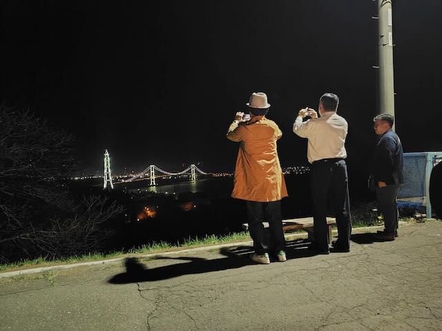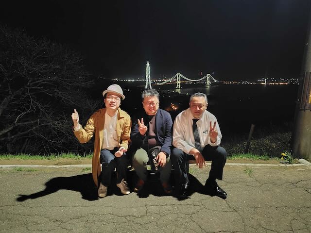 夜な夜なおじさん3人でベンチに座って記念撮影もしてみたよね