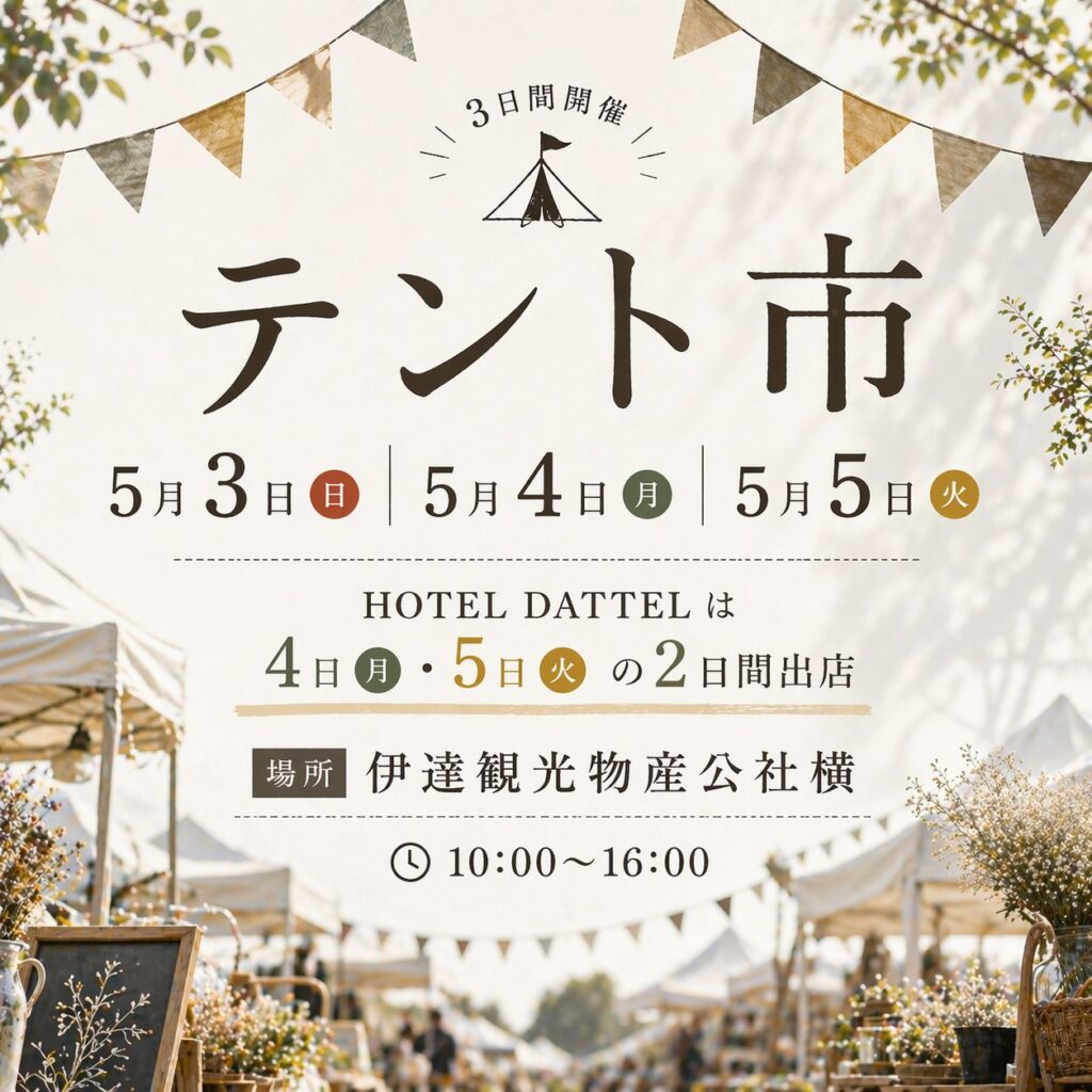 テント市は5月3日(日)〜5日(火)での開催になります