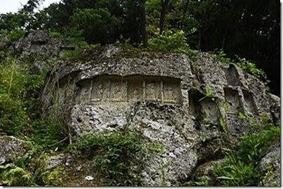 「岩観音」(旧川場温泉村)・・・昔の人が岩に三十三体の仏像を彫った。
