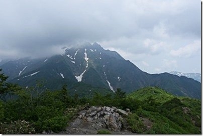 標高1500メートル地点から谷川岳を見る。