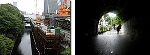 右手はJR御茶ノ水駅 。 聖橋下の歩行者用トンネル。