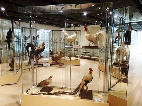 そして驚いた。日本と外国の123羽のニワトリの剥製が並んでいたのである。