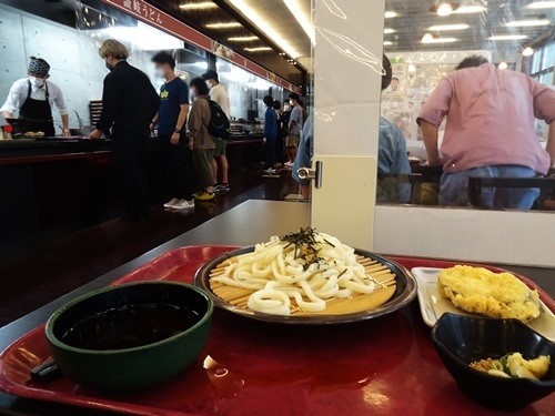 私は「ざるうどん」の食券を340円で買った。隣の学生用を見たら、220円だった。