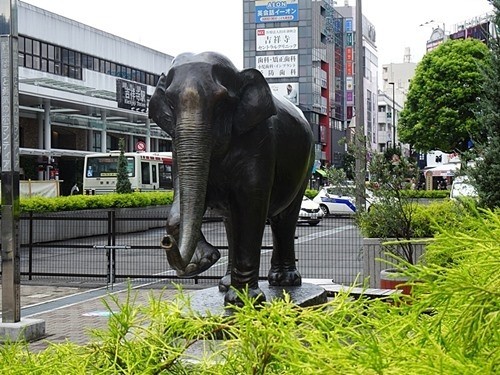 バスは車内の事件があったので、少し遅れて40分も掛かって「吉祥寺駅北口」に着いた。吉祥寺はここへ越す前にはよく来た街である。駅前のロータリーに象の「はな子」の記念像があったので、そこで記念撮影をした。