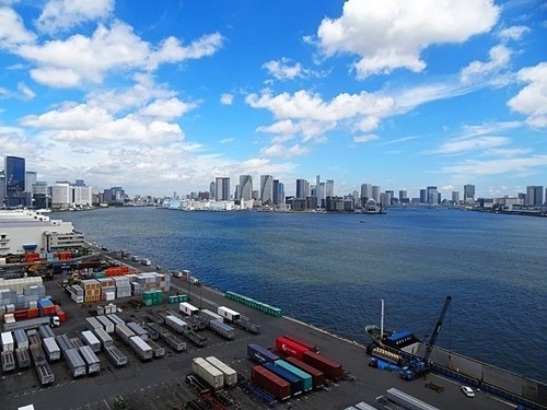 下を見ると、芝浦ふ頭に置かれたコンテナーが整列していて、とても綺麗だ。