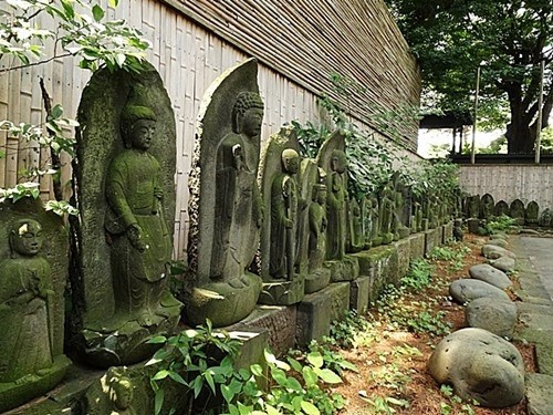 入口を入った左側にたくさんのお地蔵さまが並んでいる。