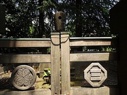「徳川家」の家紋と「浅葉家」の家紋の付いたお墓