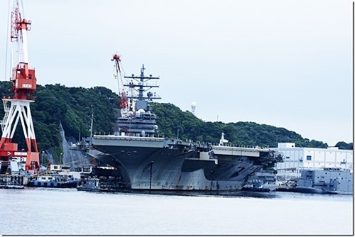 更に先に進むと、右側に巨大な原子力空母「ドナルド・レーガン」が現れる。
