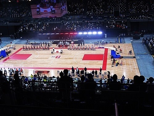 やっとパラ・バスケットのエキジビション・マッチが始まった。私は初めて車椅子バスケットボールを見た。