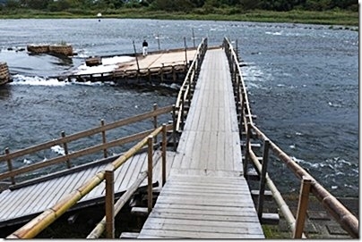竹で作られた簗場に入ってしばらく簗を見たが、全く鮎の姿は見えない。