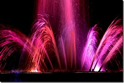 日比谷公園のシンボルの噴水はピンク色に染まっていた。