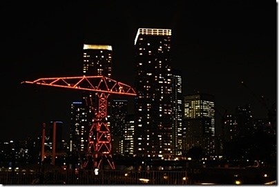 暗い夜道を進み、オリンピックの選手村の工事中の脇を通り過ぎて、晴海ふ頭に着く。