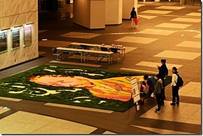 トリトンスクエア3階に作られた「フラワーアート」( ゴッホの「自画像」)