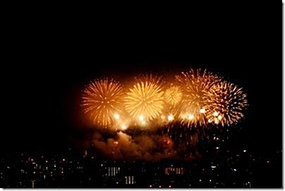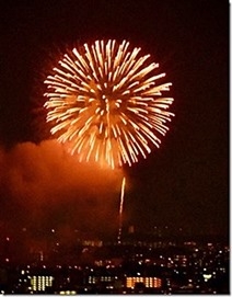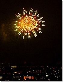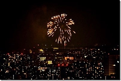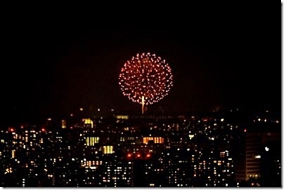 7月29日に近所に住むOさんカップルに「私の家から隅田川花火大会を見ませんか?」と誘ったのに、当日は生憎の雨の上に、ビルも出来て見通しが悪くなり良く見えなかった。ところが8月5日の午後7時過ぎに窓から外を見たら、真正面で花火が上がった。