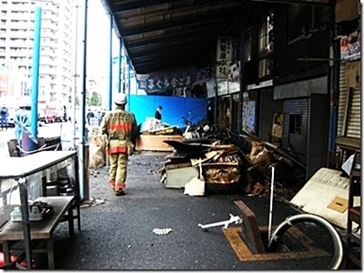 火災現場の一角を除き、他はいつものように営業していて、いつものように外国人観光客で溢れていた。一刻も早い復興を願う。でも、その時もまだ現場は焦げ臭かった。