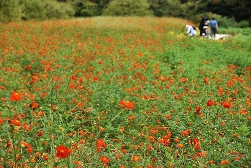 入口からお花畑が見えた。いつもと違い、大勢の人達が来ていた。
